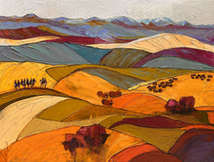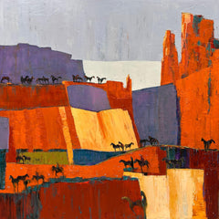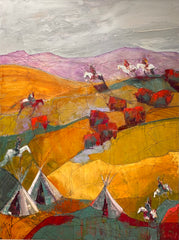 Faye’s professional experience as an architect lends a unique element to her creative process. By incorporating a variety of materials in her painting, she effectively builds pieces of art that capture the natural electricity and comforting warmth of the American West.