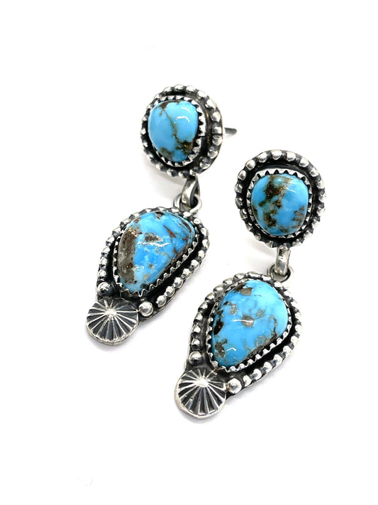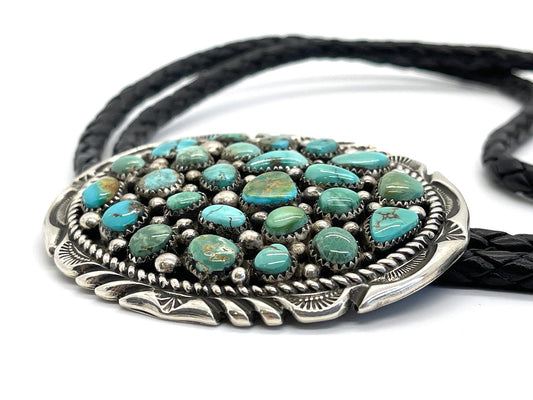 Jeanette's pieces are recognizable for her distinctive combination of silverwork and beautiful natural stones. Preferring the traditional Navajo style with heavy, deep stamping and high polishes, she still follows her first employer's advice: to leave a mark to show the jewelry was handmade.