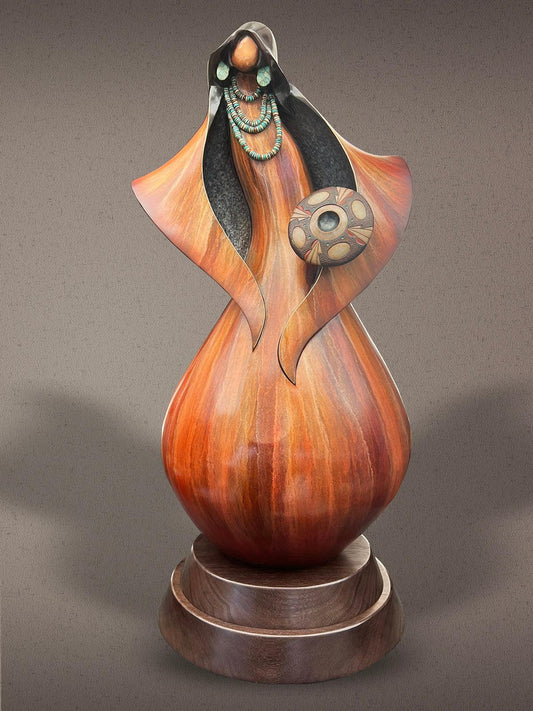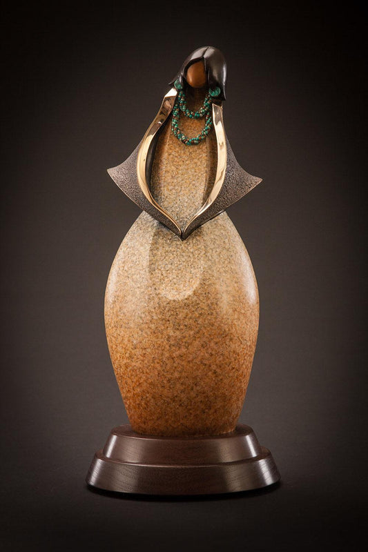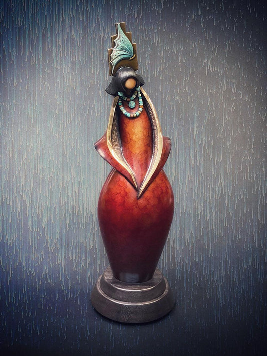 Kim started her art career as a child finding rocks in the washes in Arizona and painting figures, which her family still keeps today. She started sculpting her Hopi maidens over twenty years ago and still has yet to scratch the surface of her cultural history. "The Hopi Tribe of Northern Arizona, is thousands of years old. I have a lifetime to fully explain my people and their history. I know many of my collectors now understand more about the women and their powerful place in Hopi history."