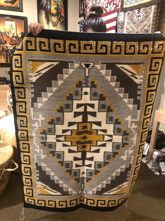 Known for their intricate designs and rich colors, the natural dyes are often derived from plants and minerals found in the surrounding environment. Typically made on a vertical loom, using a technique known as tapestry weaving, the weaver interlaces horizontal and vertical threads to create their design. Ranging from simple, monochromatic patterns to complex, multicolored compositions, these weavings have long been an important part of the Navajo culture, both as a way to preserve their heritage and as a means of artistic expression.