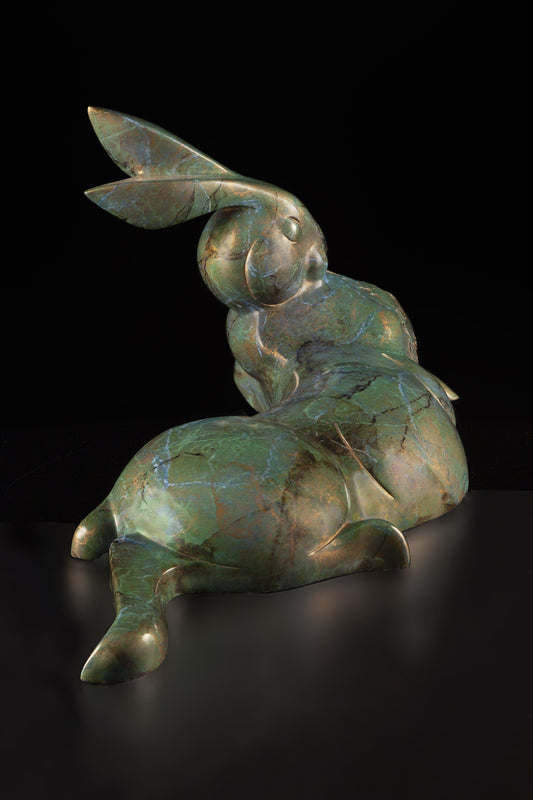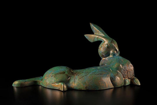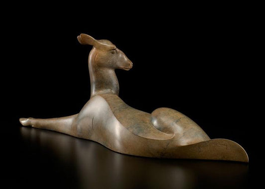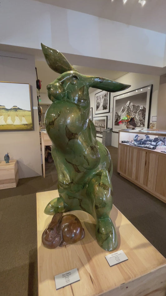 In 1988 while Tim was living in Canada, he met noted sculptor Dan Ostermiller who invited him to visit his studio in Loveland, Co. It was here that Tim went to work in the studio of both Ostermiller and Fritz White learning the skills necessary for the sculptural process and stone carving. Carving alabaster, Tim began to find within it the shapes of the animals which were to become his life work, experimenting with graceful simple lines and forms.