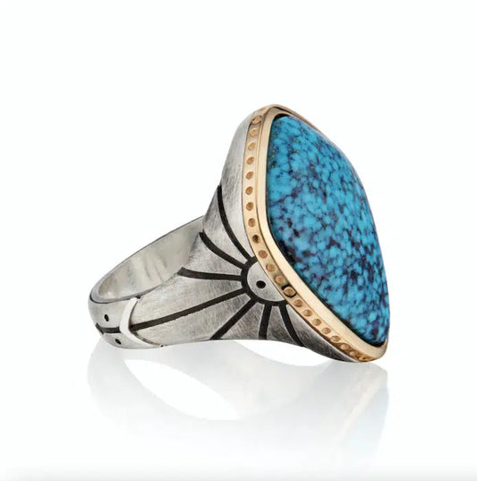 14ct Rose Gold Kingman Turquoise - Cross Bones Ring