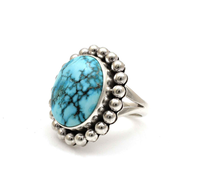 The Yellowhorse jewelry trademark "Rising Sun" design is one of their most popular collections with its round or oval-domed center surrounded by small 'drops' or beads of silver – each one made by hand.