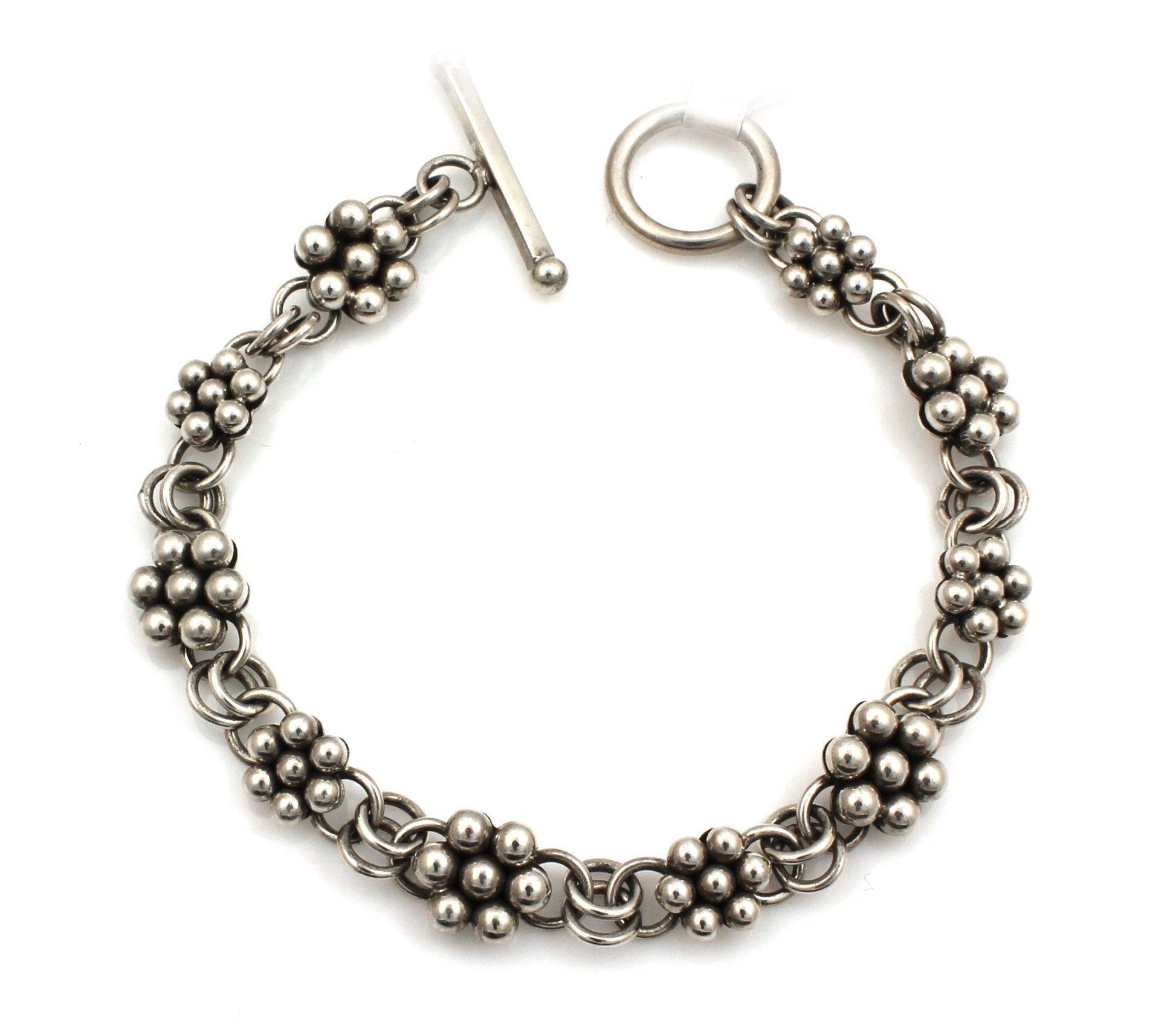 Sterling silver flower link bracelet by Navajo artist Artie Yellowhorse. 6”