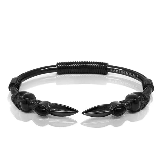 Skull Arrow Stone Cuff - Hinged / Black or Silver