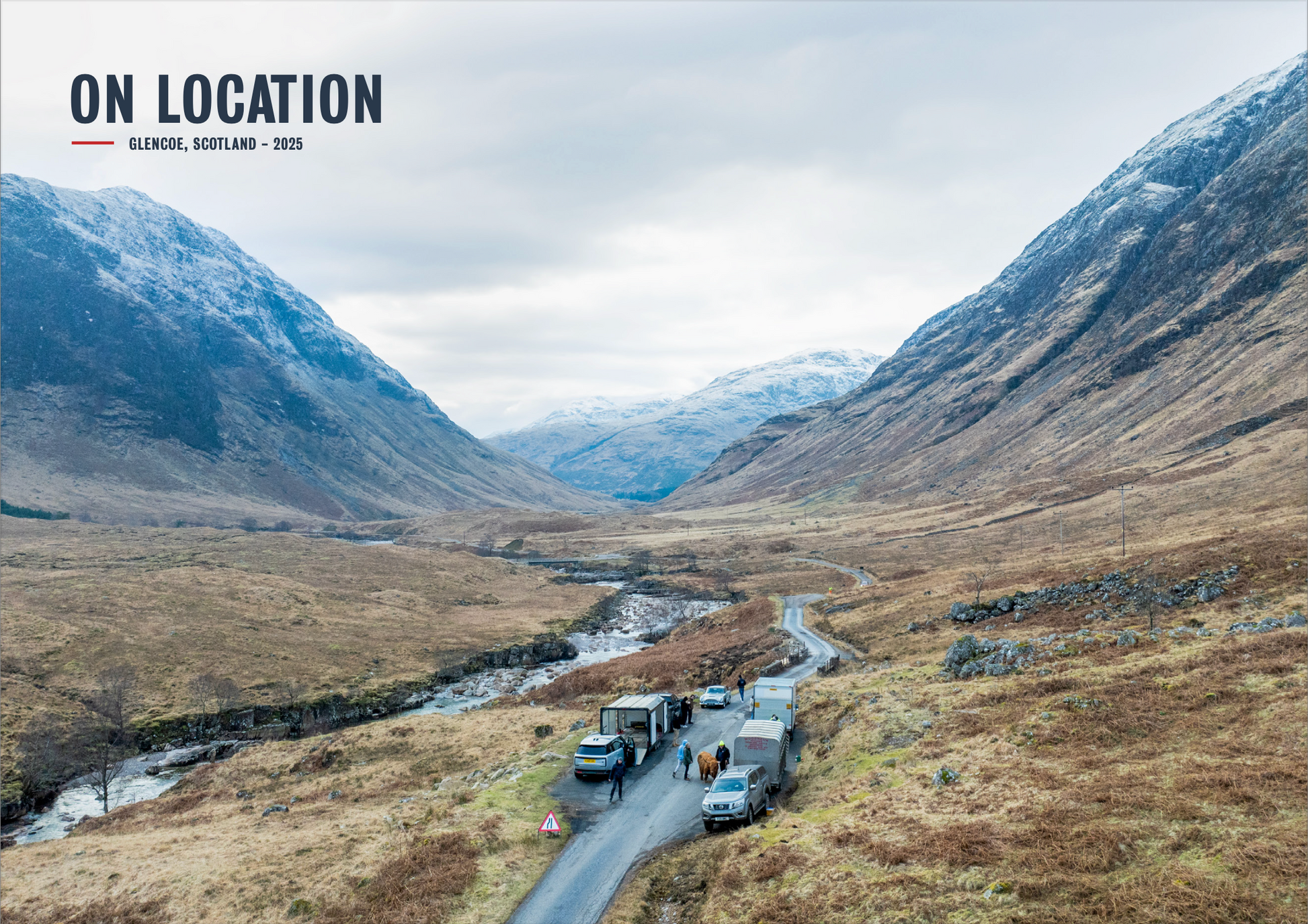With the help of the Alba traffic department of the Scottish Police, we were able to secure permits to briefly close the road. We were fortunate with the weather; this is not a blue-sky place and ideally, we wanted some snow and a hint of menace in the sky. There is a mournful beauty to the highlands that is visually compatible with flat light and low cloud. The sky falls low in Scotland.