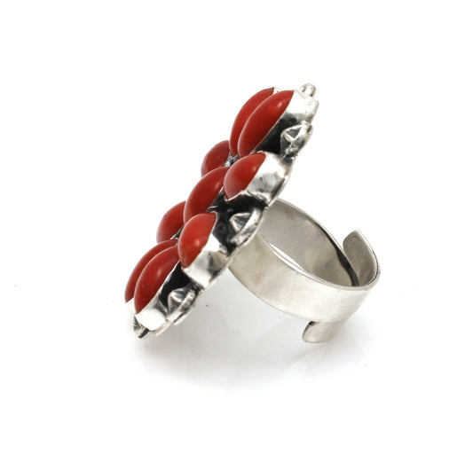 Red Coral Cluster Ring