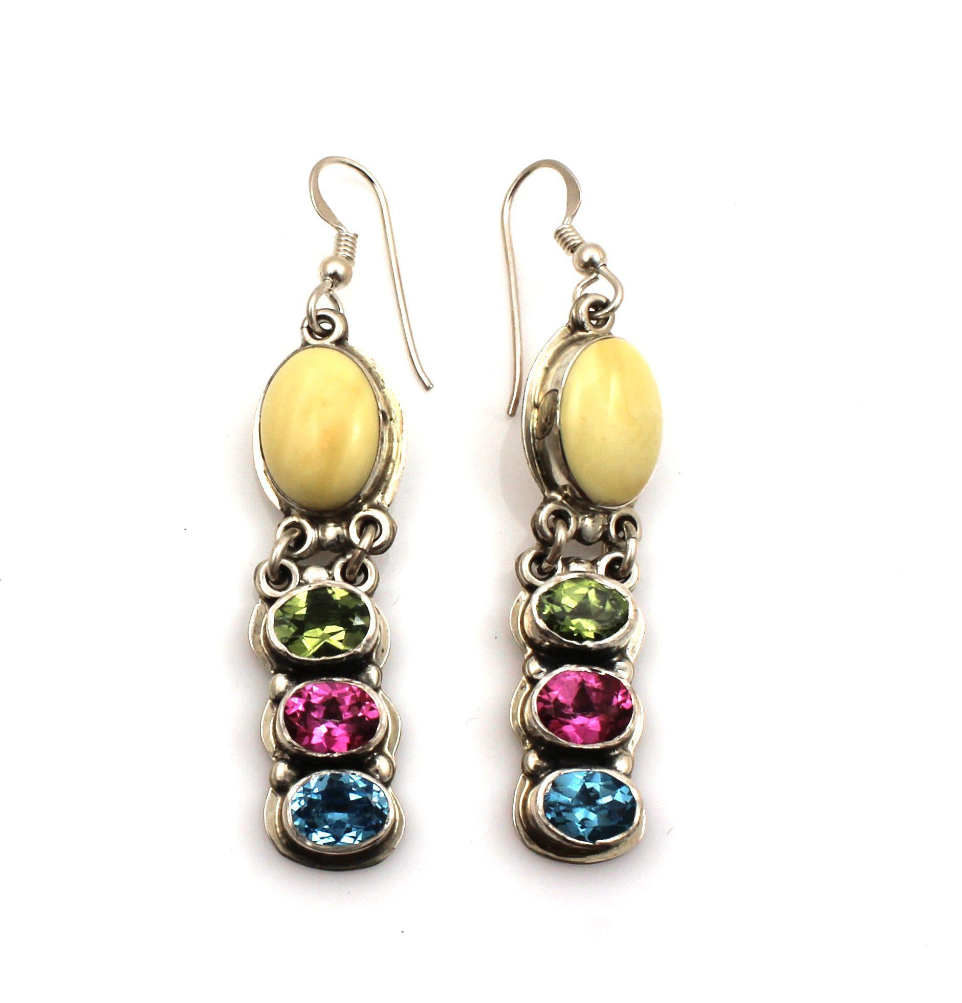 Sterling silver with butterscotch amber and crystals, 2 1/2” long, post backing