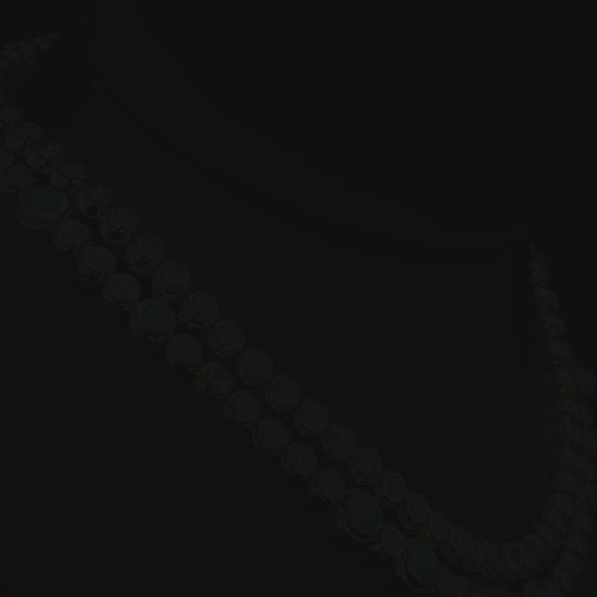 This exquisite tennis necklace showcases 10 total carats of natural diamonds and sleeping beauty turquoise, elegantly set in 18K gold or platinum, with a refined 16.5-inch length. (Available in custom lengths)