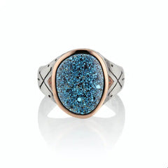 Ithaca-Peak Turquoise Ring - 14ct Rose Gold - Oxidized Silver
