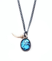 Hand Forged Roman Coin Necklace With Cognac Diamond 14ct rose Gold – Oxidized Silver
