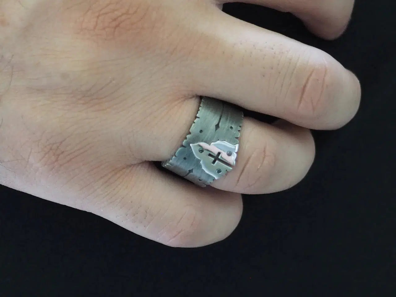 Sacred Heart Ring / Black Diamonds - Oxidized Silver