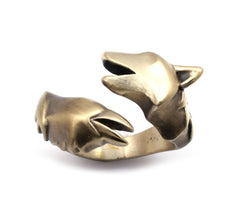 14K Gold Small Fox Ring with Diamond Eyes