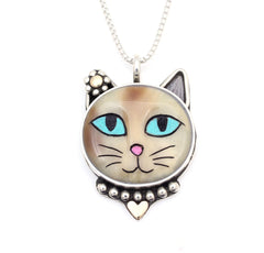 Raised in a Spanish-New Mexican household, Michelle’s Spanish-Catholic upbringing, personal Tibetan Buddhist philosophies, and Native American heritage bring multicultural influences to her work. Inspired by nature and animals, cats, dogs, bunnies, butterflies, fairies, dragonflies, and mermaids are among the whimsical motifs she creates. Her small wearable devotional pieces are called Relicarios, and she has several pieces with the image of Buddha and brightly colored Lotus blossoms. Working from her home studio in Santa Fe, Michelle carves each piece by hand from fossilized walrus tusks, some dating back 20,000 years. She fabricates all her own metalwork, setting every hand-inked design in fine metals..