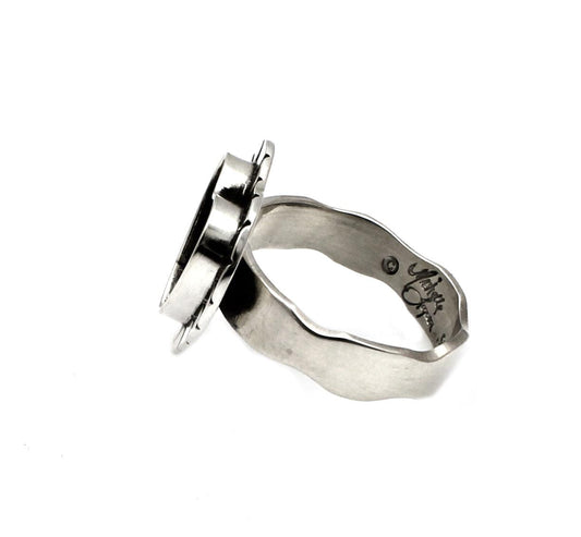 Raised in a Spanish-New Mexican household, Michelle’s Spanish-Catholic upbringing, personal Tibetan Buddhist philosophies, and Native American heritage bring multicultural influences to her work. Inspired by nature and animals, cats, dogs, bunnies, butterflies, fairies, dragonflies, and mermaids are among the whimsical motifs she creates. Her small wearable devotional pieces are called Relicarios, and she has several pieces with the image of Buddha and brightly colored Lotus blossoms. Working from her home studio in Santa Fe, Michelle carves each piece by hand from fossilized walrus tusks, some dating back 20,000 years. She fabricates all her own metalwork, setting every hand-inked design in fine metals..