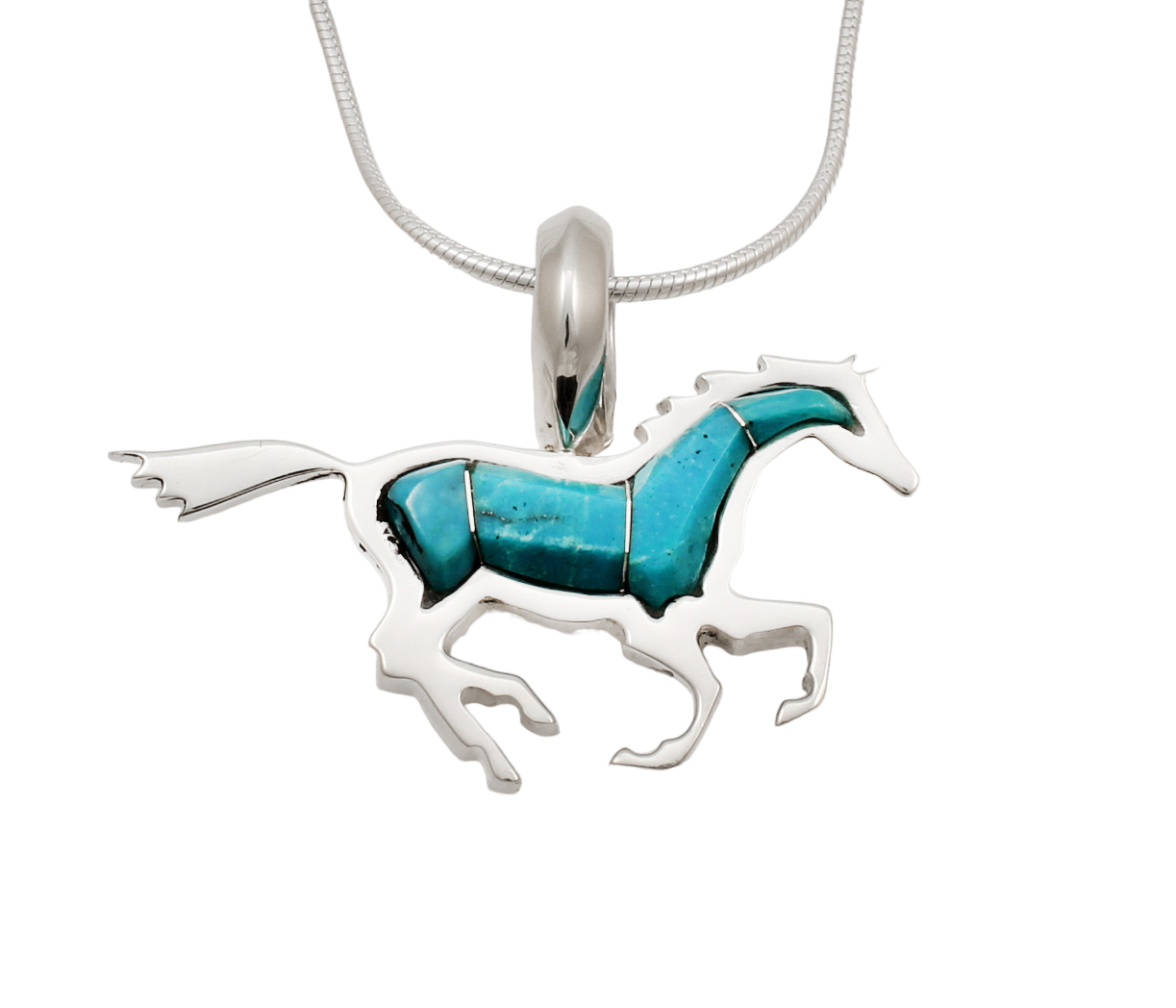 One of the best sellers of Nighthorse Jewelry. This small Running Horse Pendant is an all time classic and favorite among Ben Nighthorse Collectors.