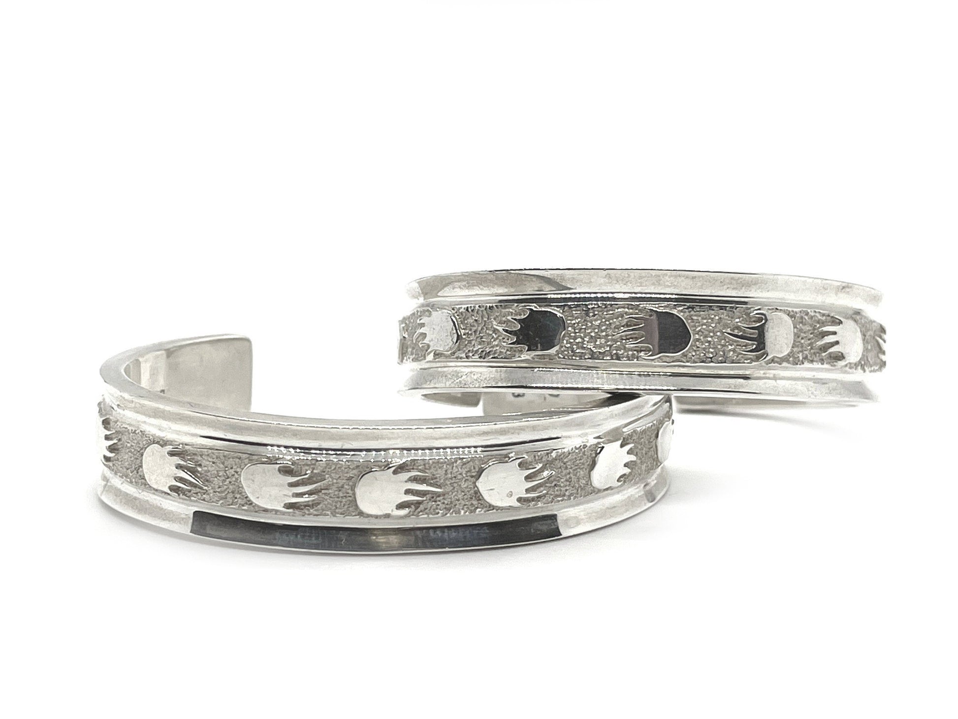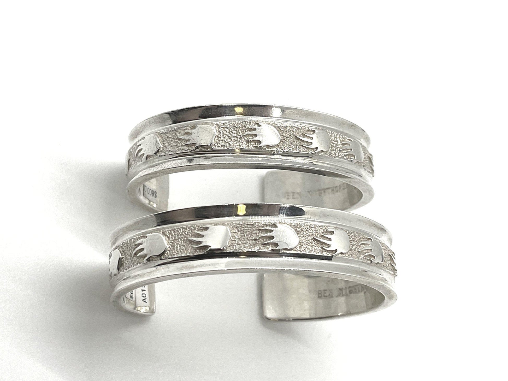 A Signature Style Nighthorse Cuff Bracelet in Sterling Silver. Ben Nighthorse often depicts noble animals in his jewelry designs - here he features the strong and powerful tracks of a bear. This piece is a classic Nighthorse Design and is a favorite among Nighthorse Jewelry Collectors.