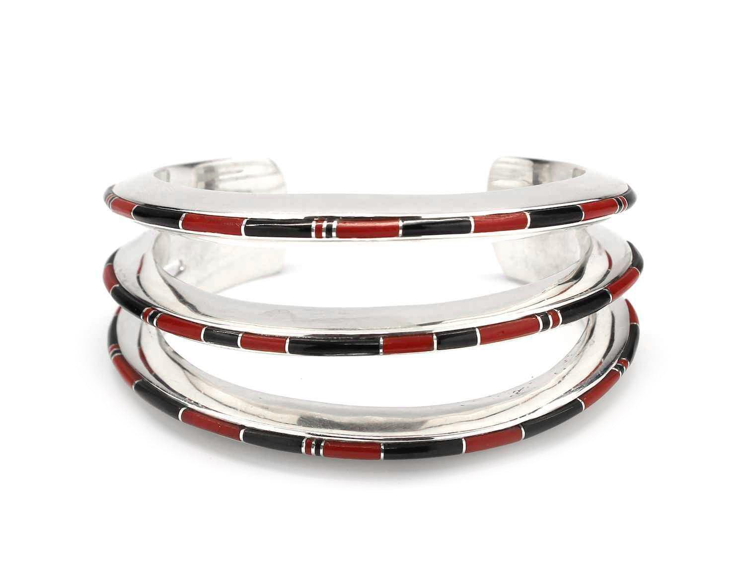 Sterling silver with rosarita and black onyx 1 1/4" wide, size 6 3/8
