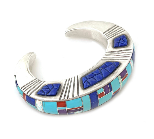 For over fifty years, Northern Cheyenne artist Ben Nighthorse has created beautiful, award winning jewelry. Ben Nighthorse moved to Tokyo in 1960 to train for the 1964 Olympic games, where he captained the U.S. Olympic Judo Team. In Japan, his interest in metal-working grew when he studied under a Samurai sword maker. He began to develop techniques of laminating metals and jewelry designs that were heavily influenced by his time in Asian culture.
