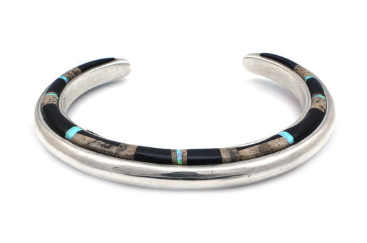 For over fifty years, Northern Cheyenne artist Ben Nighthorse has created beautiful, award winning jewelry. Ben Nighthorse moved to Tokyo in 1960 to train for the 1964 Olympic games, where he captained the U.S. Olympic Judo Team. In Japan, his interest in metal-working grew when he studied under a Samurai sword maker. He began to develop techniques of laminating metals and jewelry designs that were heavily influenced by his time in Asian culture.