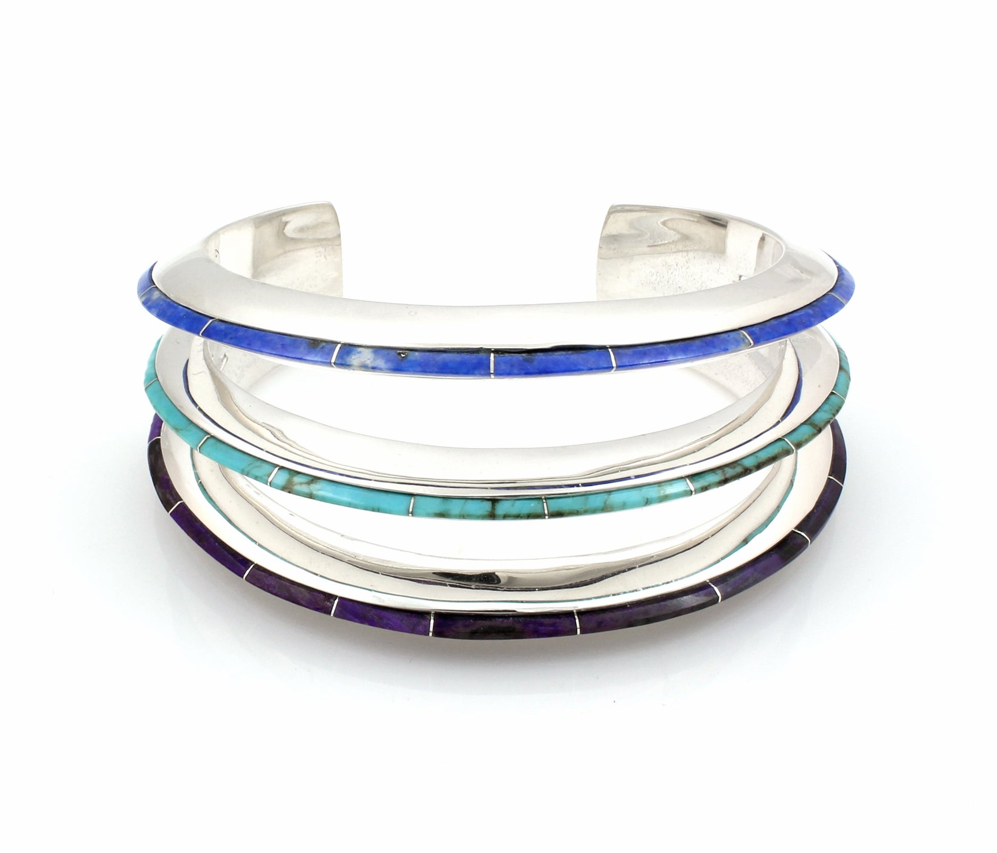 Sterling Silver Inlaid With Lapis, Turquoise, and Sugilite, 2 1/4" Wide