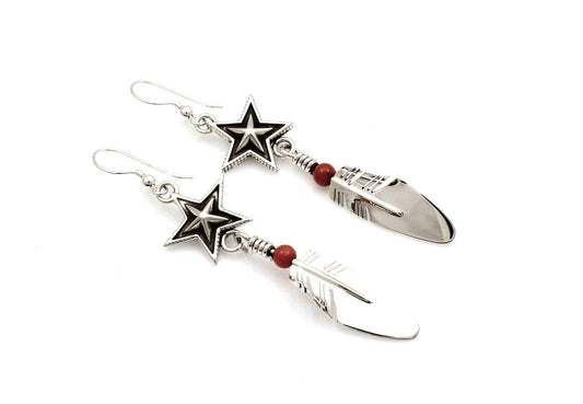 Small Star Feather Earrings