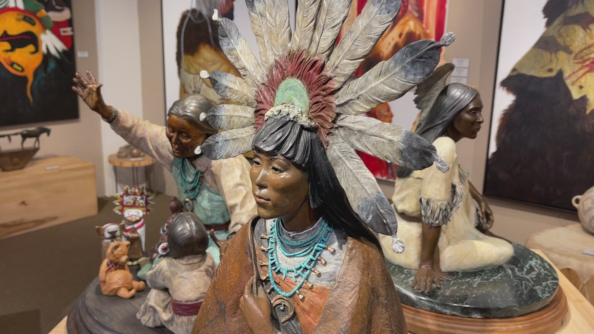 There is a chill in the morning air at San Juan Pueblo, where the Cloud Dance, which is usually held in early spring because of its associations with agriculture, weather control and fertility, is about to begin. The women who will perform, some having thrown the blankets over their shoulders to stay warm, all wearing elaborate headdresses made of twelve eagle feathers in a fan on top of their heads and carrying ears of corn, slowly make their way towards the plaza where the male dancers are waiting. In that contemplative moment this young Pueblo woman takes the opportunity to reflect on the contentedness that follows from participation in an activity that will reinforce her sense of tribal belonging. In the serene expression that Star has given her, a wholeness radiates from within that is derived from having found a balance between past and present in her life.