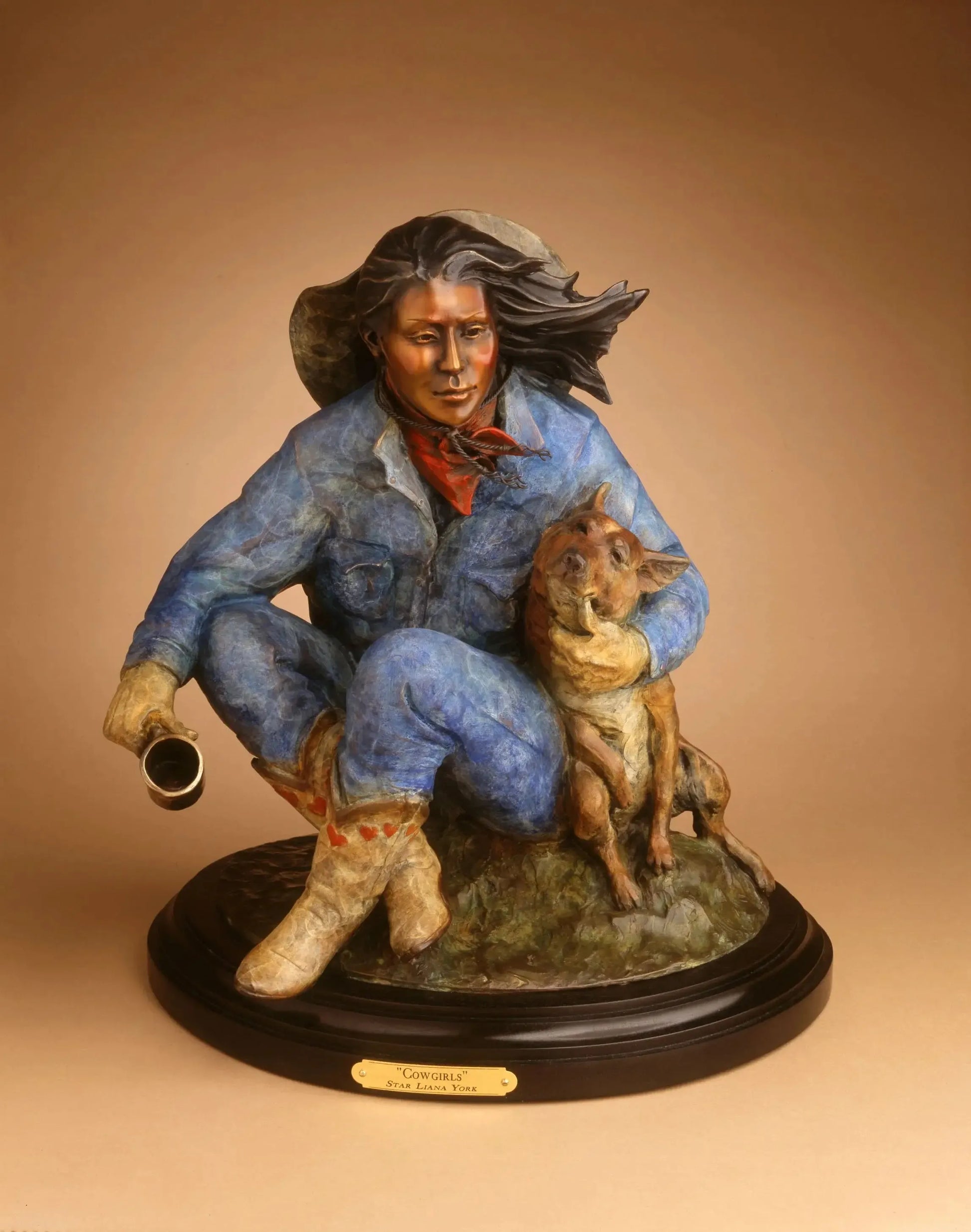 This cowgirl is almost unconscious in her easy affection for her dog, but her thoughts go beyond that immediate relationship. Her gaze encompasses the entire vista of her world, and it fills her with clarity and deep satisfaction for the place she is now in, both physically and mentally, the place her life choices have led her.