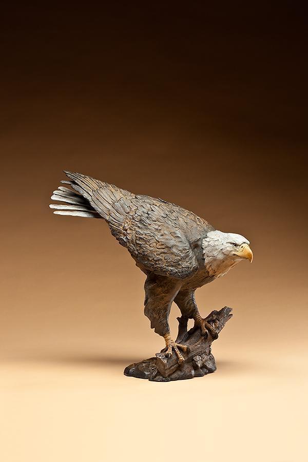 The eagle used as a model for this sculpture is a permanent resident of the Wildlife Center in Espanola, NM, only twenty minutes from Star's ranch. "Max" was brought to the sanctuary twelve years ago with shot gun injuries. He lost part of his right wing
