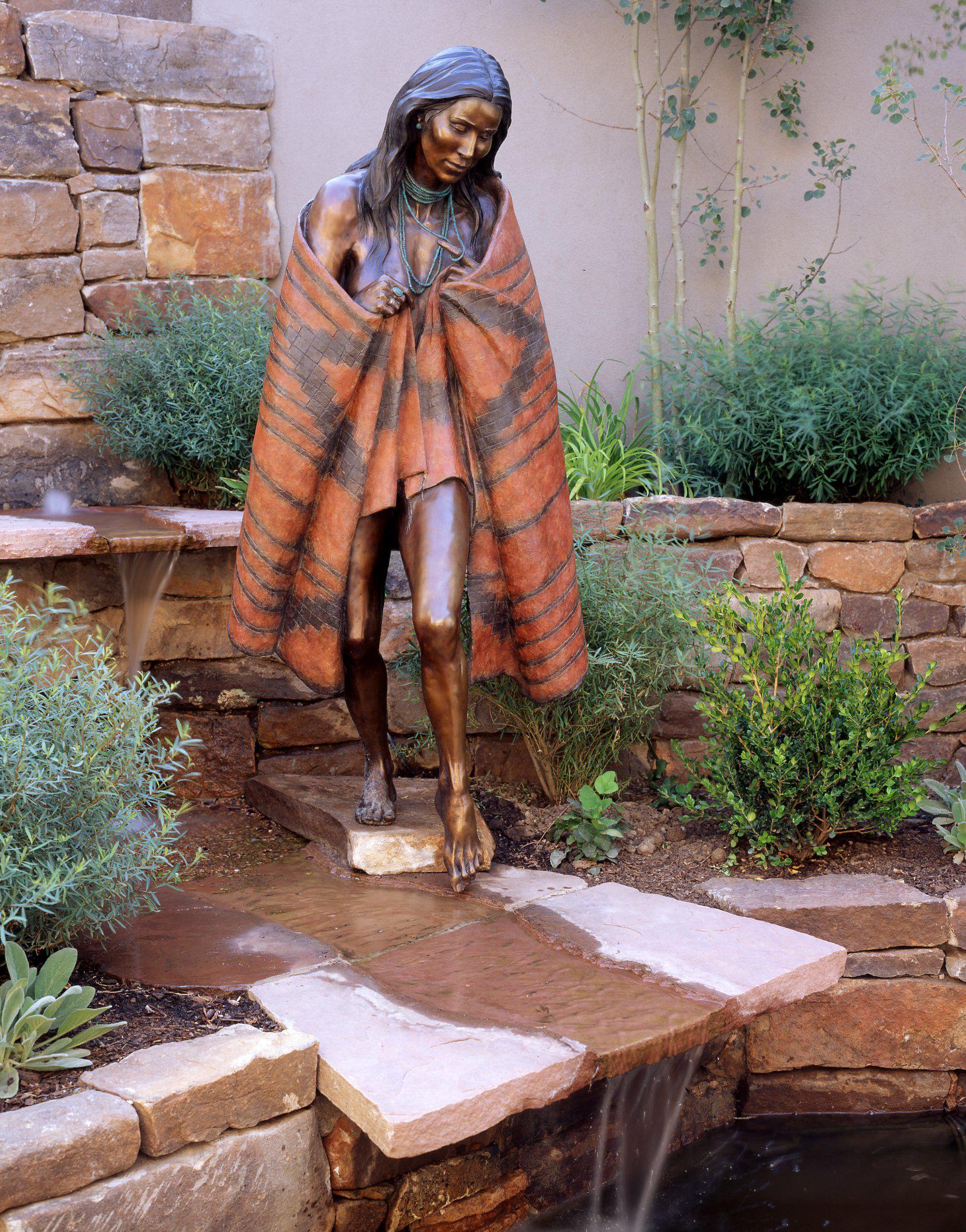 This woman, wrapped in a blanket either because of a slight chill after undressing for a bath, or out of modesty despite the implied private setting, tests the water delicately with her toe in anticipation of a refreshing bath.