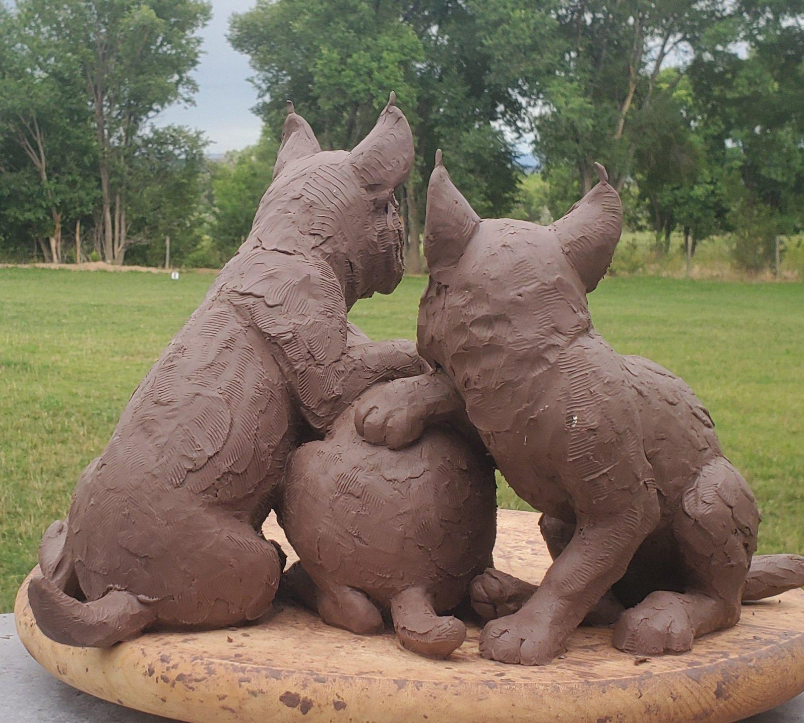These bobcat kitten siblings have been alerted to something suspicious that has grabbed their attention from their play. Each little face and body posture reflects a different way of responding to whatever this scary thing might be. One is alerted and curious….ready to investigate. The crouching one is more wary, and is starting to assume an attack/defend stance. The third is shy but interested, expecting something that might be fun. Each responds according to their individual personality, which, in my observations, varies as much in animals as in human beings.