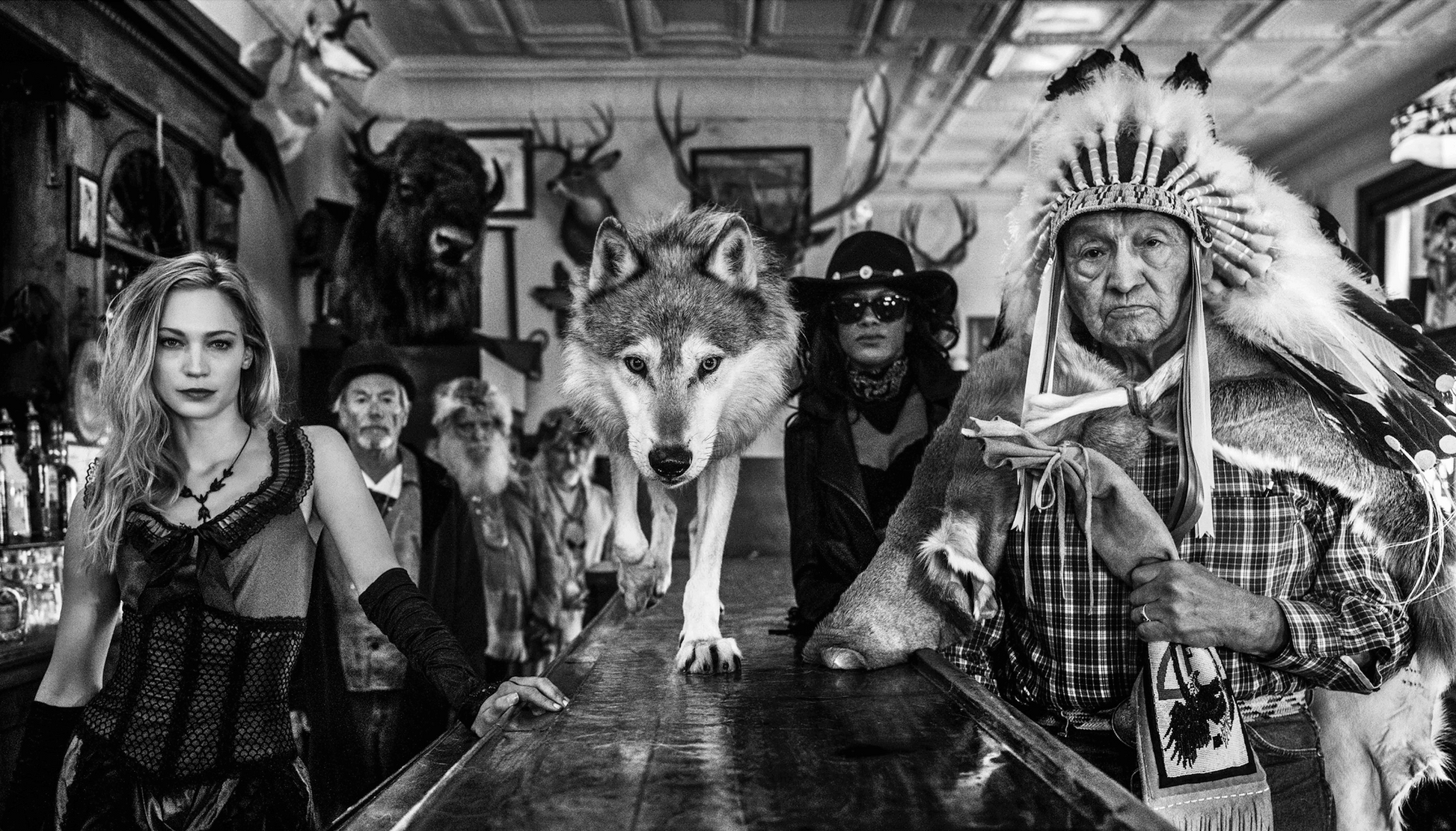 He agreed to be photographed by me and I had a preconception of what we could do. My idea was simply to cram the view finder with as many characters as possible and use the limited depth of field to prioritise the pivotal players in the scene. Preferably there would be some sense of movement - and the responsibility for that would lie with the wolf. Everything else was secondary to the wolf being sharp and I knew I could rely on the model - she always nails it.