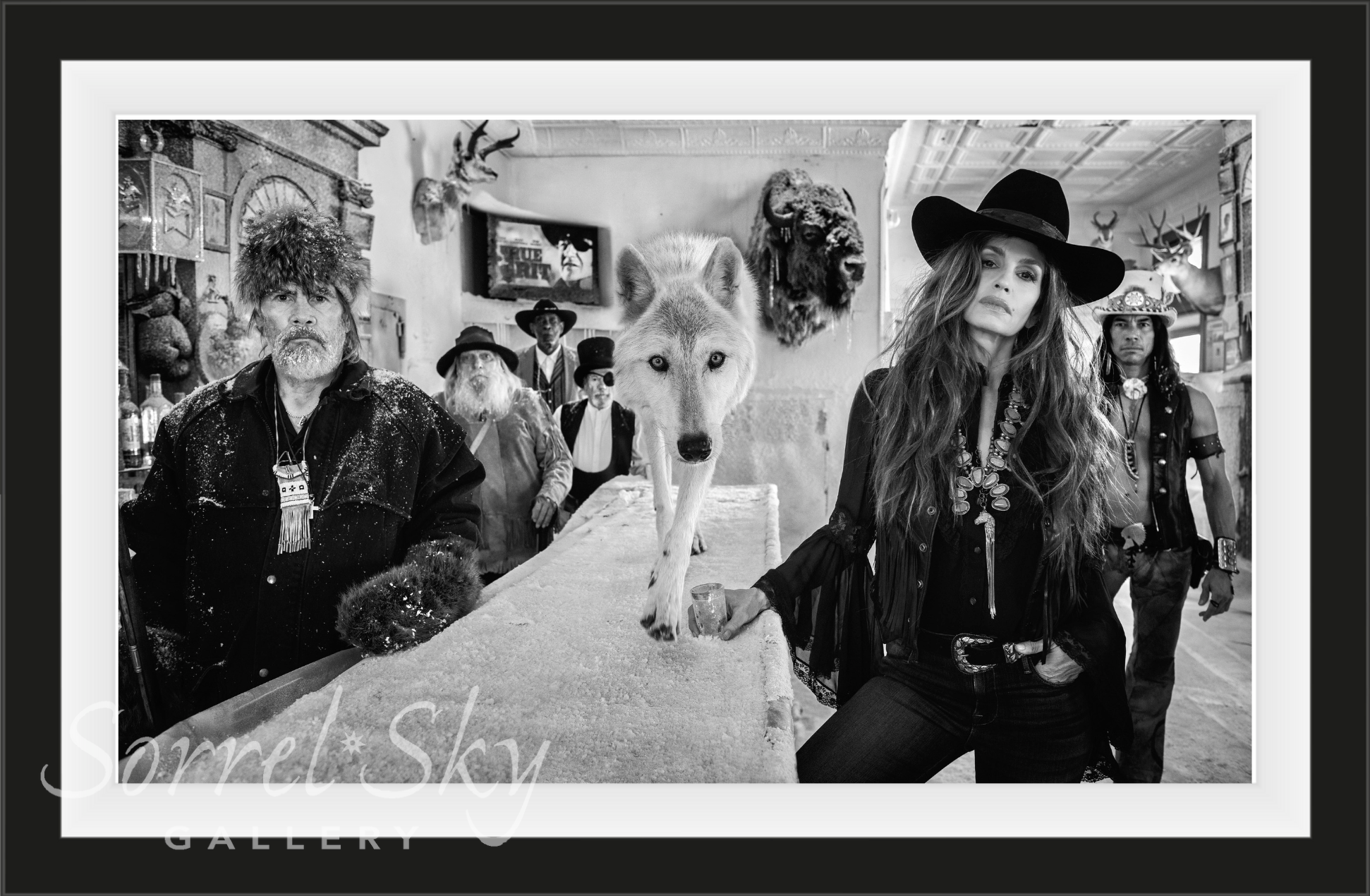 This is a frame that exhausts every inch available in the camera and that was my intent. There were so many characters I wanted to include, but I was also reluctant to lose the mood of the frozen saloon. The icicles on the frosty bison with the snow laden television playing True Grit were key assets that needed to be seen to amplify the sense of cold.