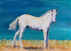 Working skillfully in both oil and watercolor, Rymer believes each medium tells its own story. Her paintings often focus on the unspoken bond between rider and horse, set against minimalist backgrounds that emphasize her subjects. Her technique, influenced by artists like Schreyvogel, demonstrates meticulous attention to detail.
