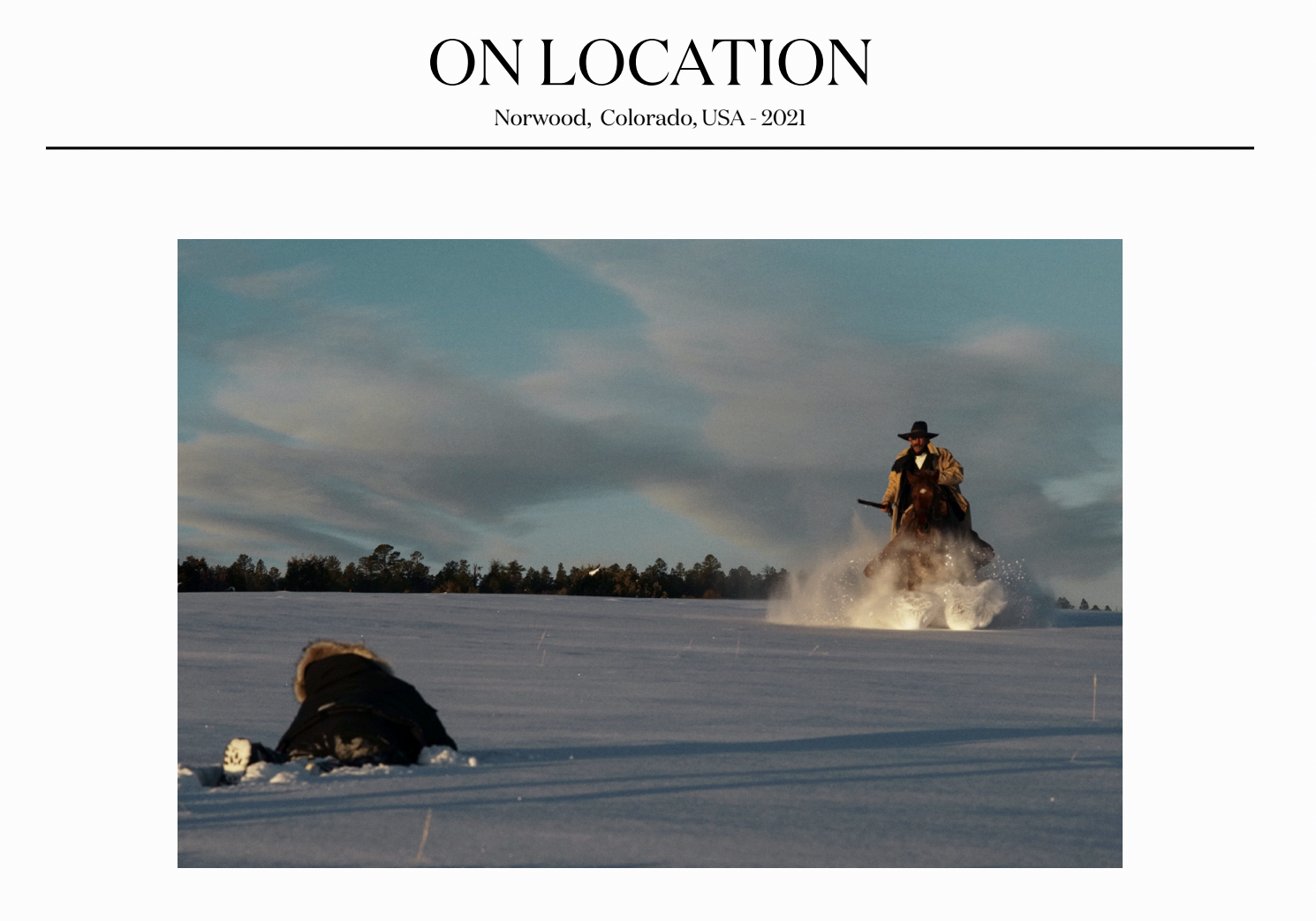 To work a horse in -20 degrees, in two feet of fresh snow, whilst holding a weapon in one hand, appearing totally at ease, is a bridge too far for 99% of riders. So, on this set in Norwood, Colorado we knew we had to work with the best of the best. Ty Mitchell on the left is as authentic a Texan cowboy as they come and it is no surprise to us that he will soon be on set for three months with Martin Scorsese. I don’t think Scorsese will be disappointed with any aspect of Ty’s character. It will not be Ty’s first rodeo, Anthony Bourdain featured him when parts Unknown visited West Texas and Marfa.