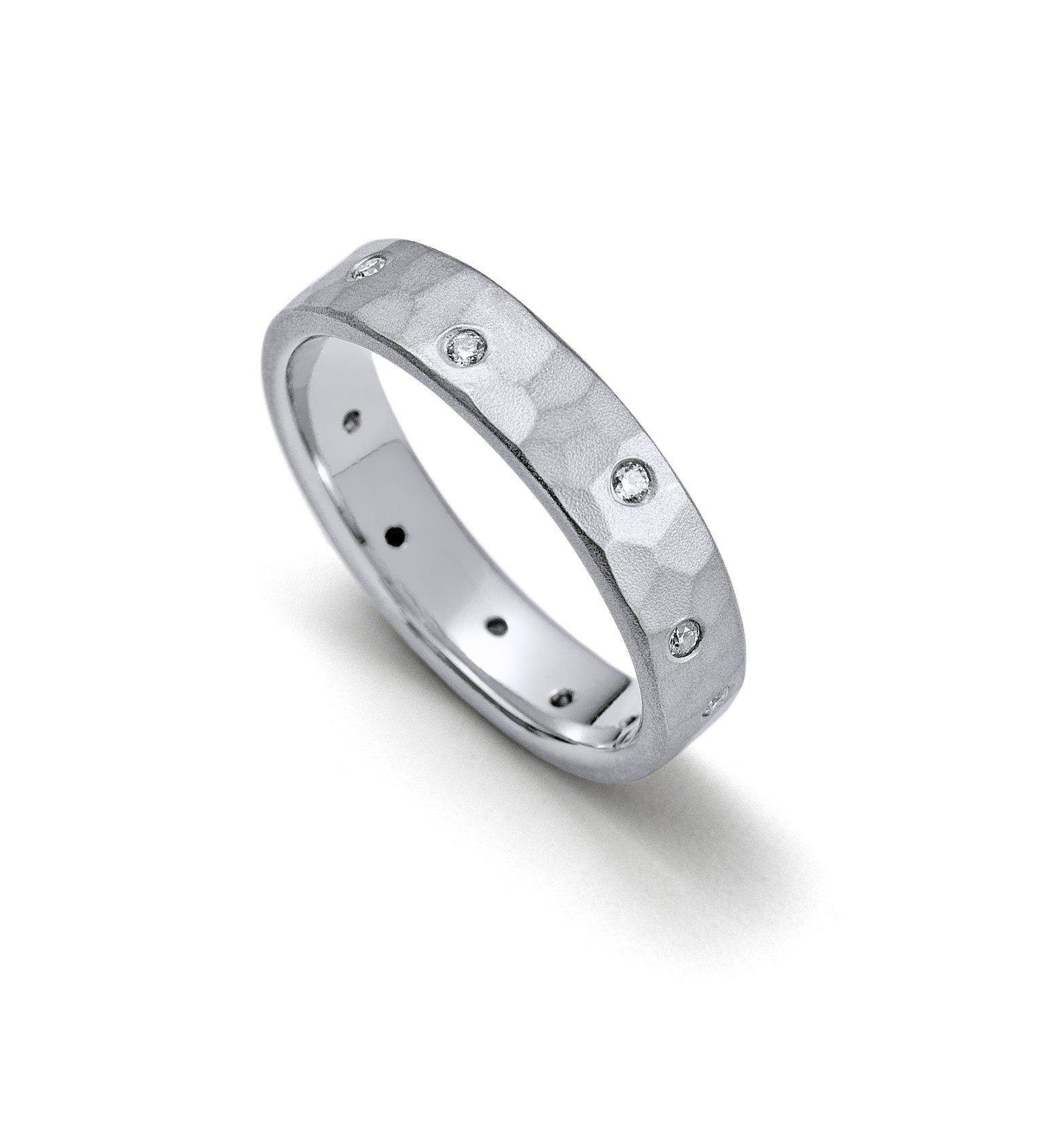 EcoSilver, matte finish, set 11 .01ct diamonds, 4mm wide.