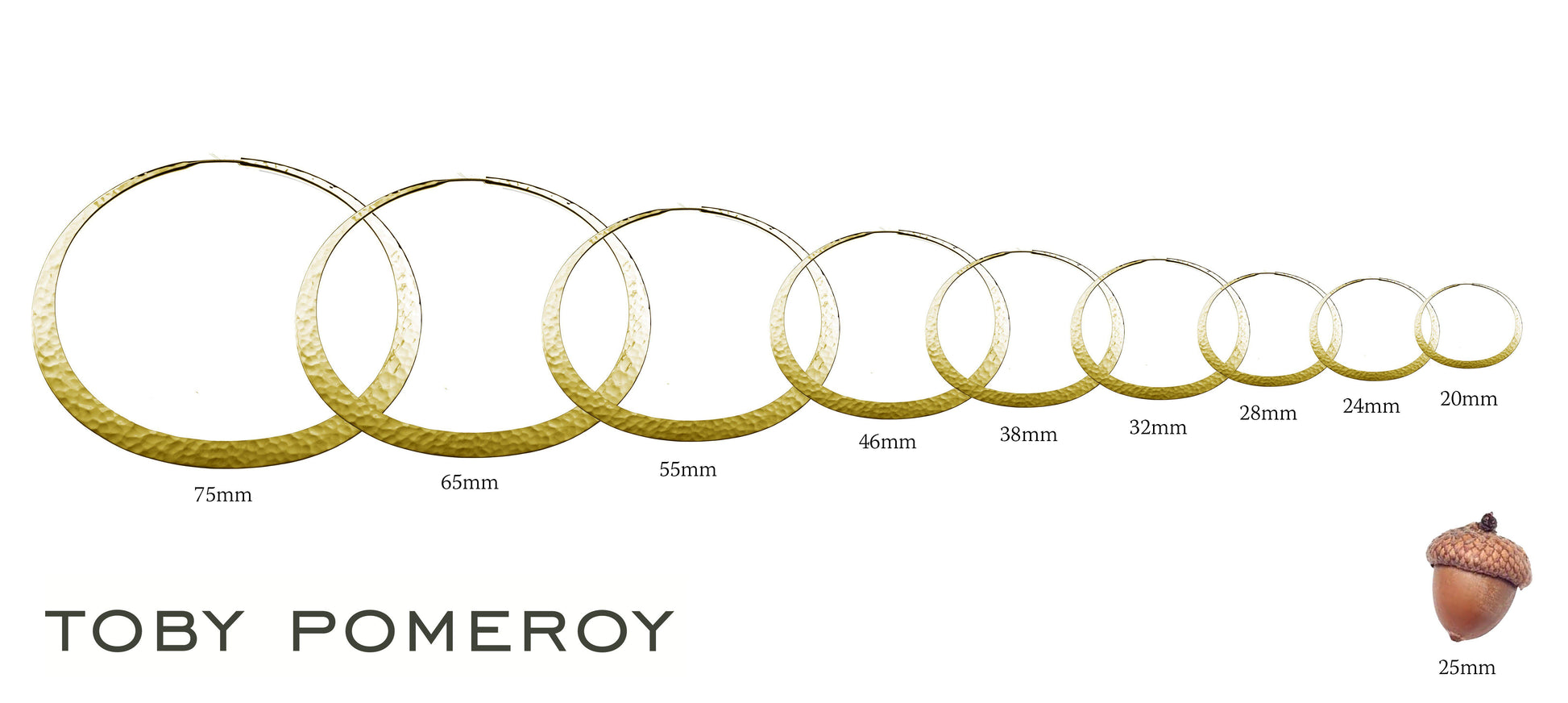 Toby Pomeroy’s classic 18kt gold hoops: the “every” earring with an eco-friendly appeal. Flattering to every face shape, suitable for any occasion from casual to elegant these hoops are an easy choice for every day wear. The Eclipse hoops are hand-forged and textured by artisans in Toby’s Oregon studio. Lightweight and comfortable for your ears and your green conscience.