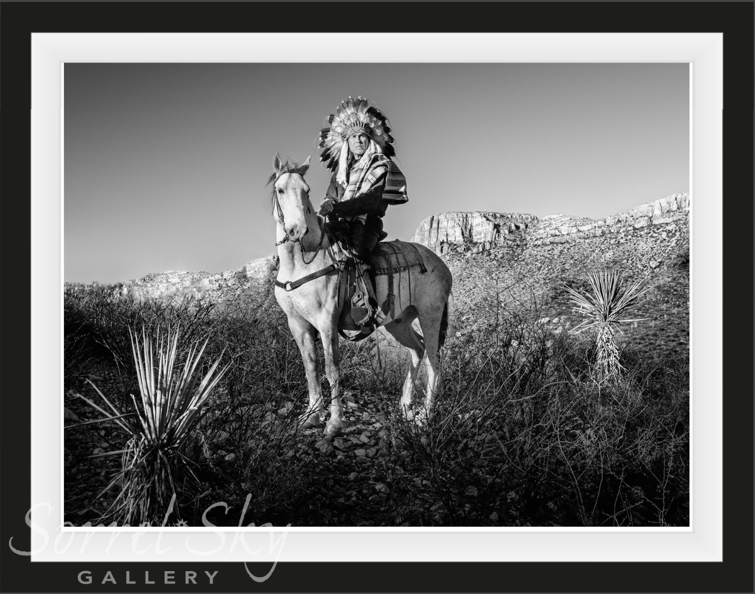 In my search for the setting for this portrait, I looked for features that would readily locate the elder and his horse. There needed to be a sense of place to lend weight to the narrative. We found this escarpment rising above cactus rich scrubland only about 40 miles north of the Rio Grande in West Texas.