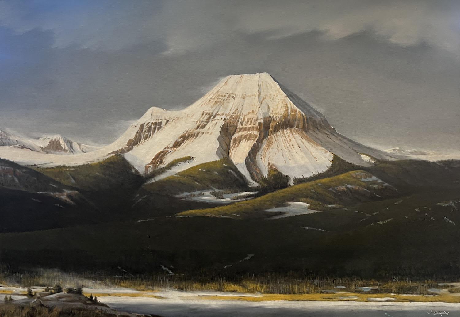 Oil on canvas, natural wood floater frame, 33" x 50" (image), 34" x 51" (framed)