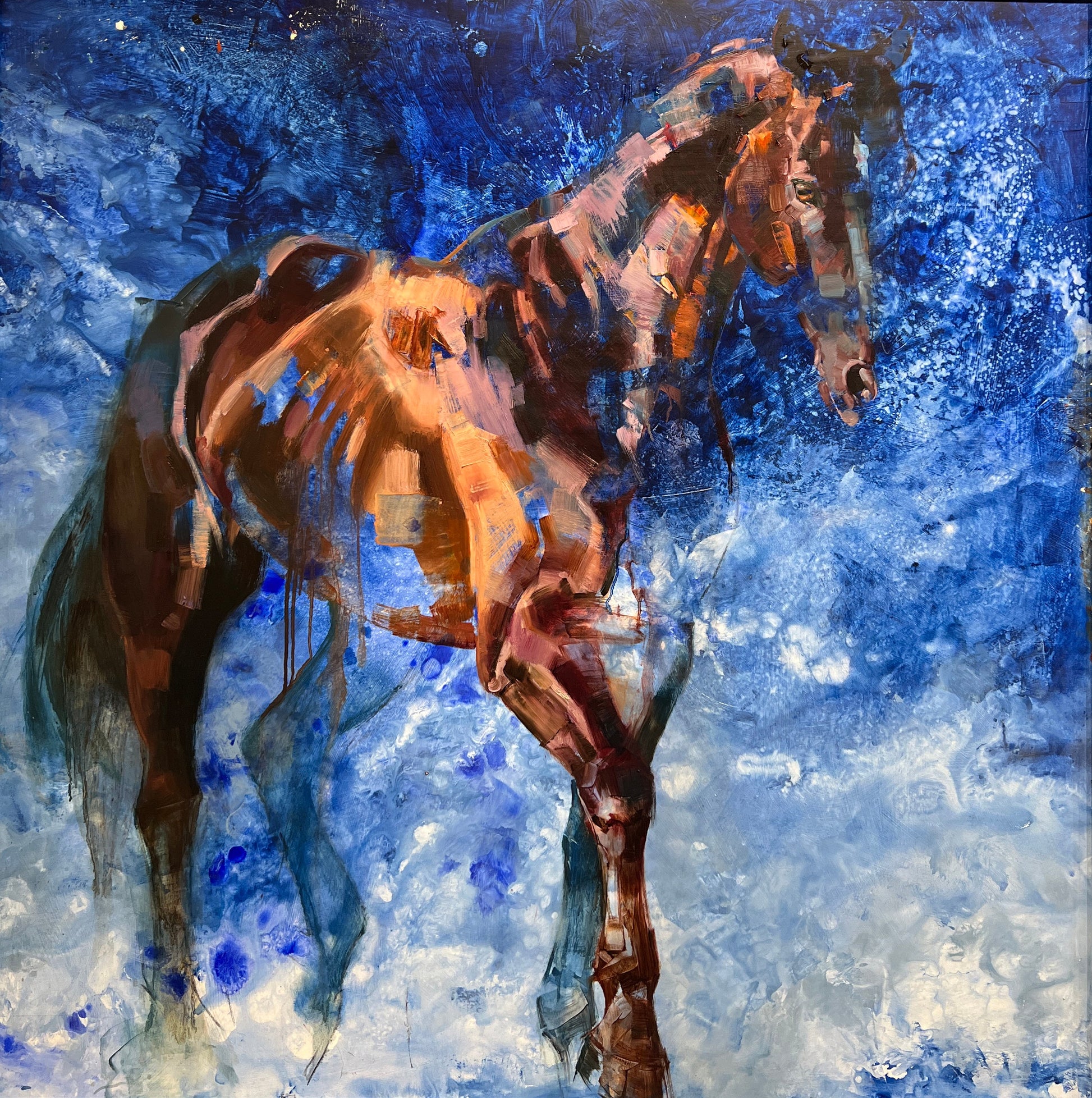 "My painted work is based on the use of mixed media (acrylic, oil, powdered pigments, charcoal, chalk pastel, oil pastel) applied in an expressionistic and fragmented fashion, aka “disrupted realism”. While this approach lets me explore my emotional response to my subjects, it also requires an intense and wordless conversation. Because each piece is a mini-adventure, my failure rate can be frustrating at times…but the successes are worth it"