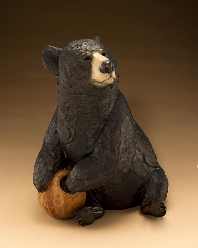 Star Liana York’s bear series are inspired by the real life animals she watches on her ranch in New Mexico. This bear has been caught red-pawed with the honey jar.
