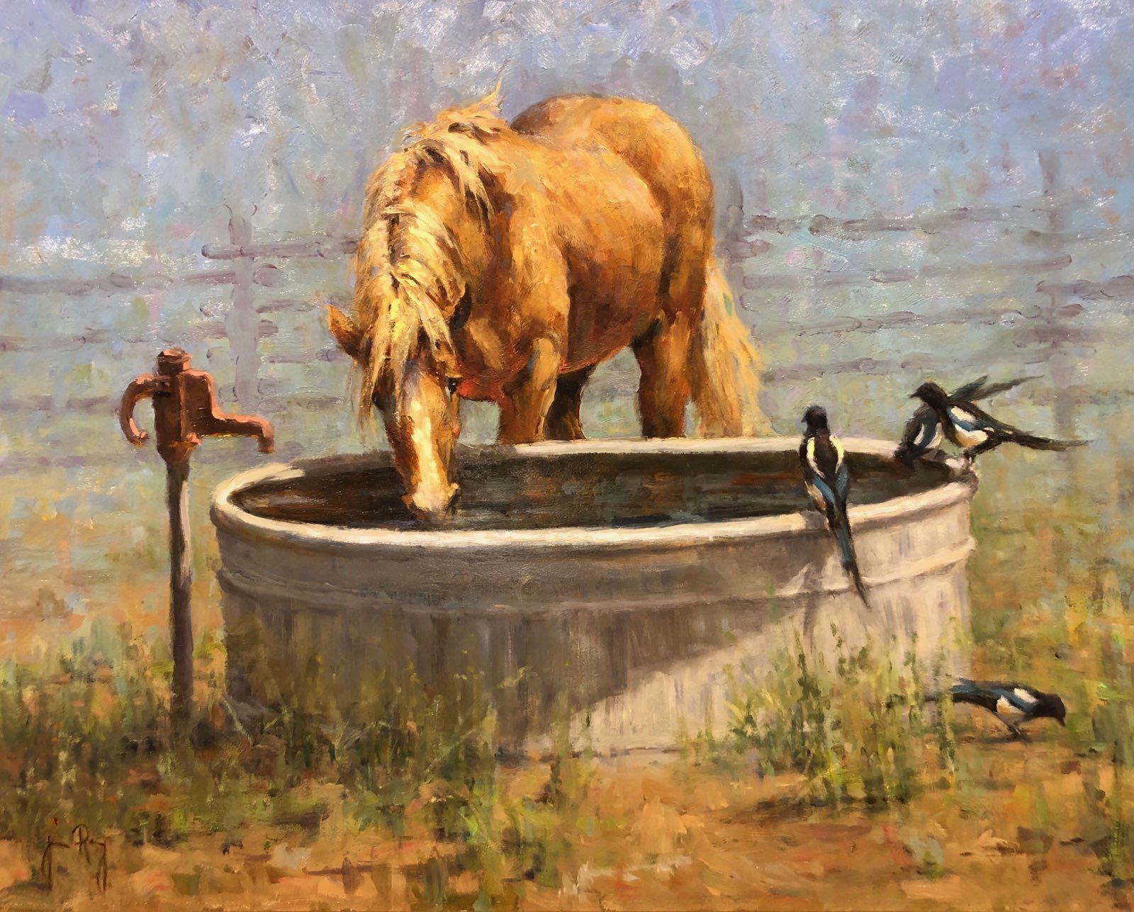 Born and raised in northern California, Jim Rey’s keen interest in ranch life was fueled by his grandfather and uncle, both cattle ranchers. Although his subject matter primarily focuses on the equine, Rey often paints the cowboy and the ranching experience.