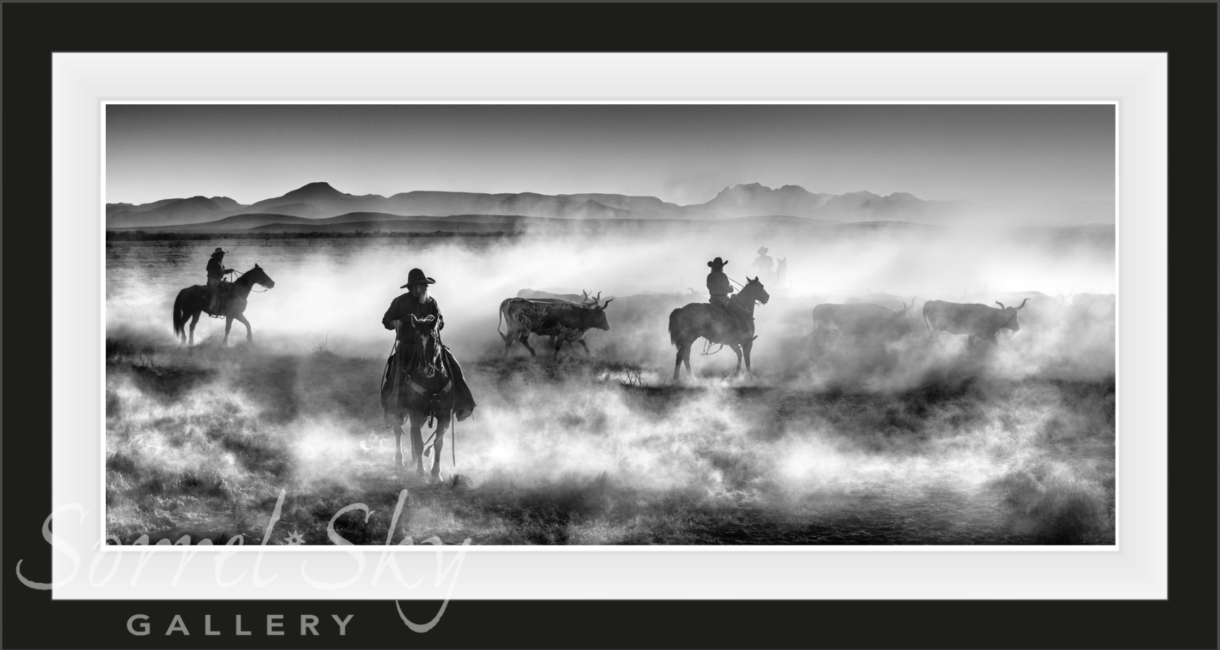 Cowboys and cattle are not a new story; the partnership is one of the most enduring symbols of post-Civil War America and that is why they visually complement this landscape so effortlessly.