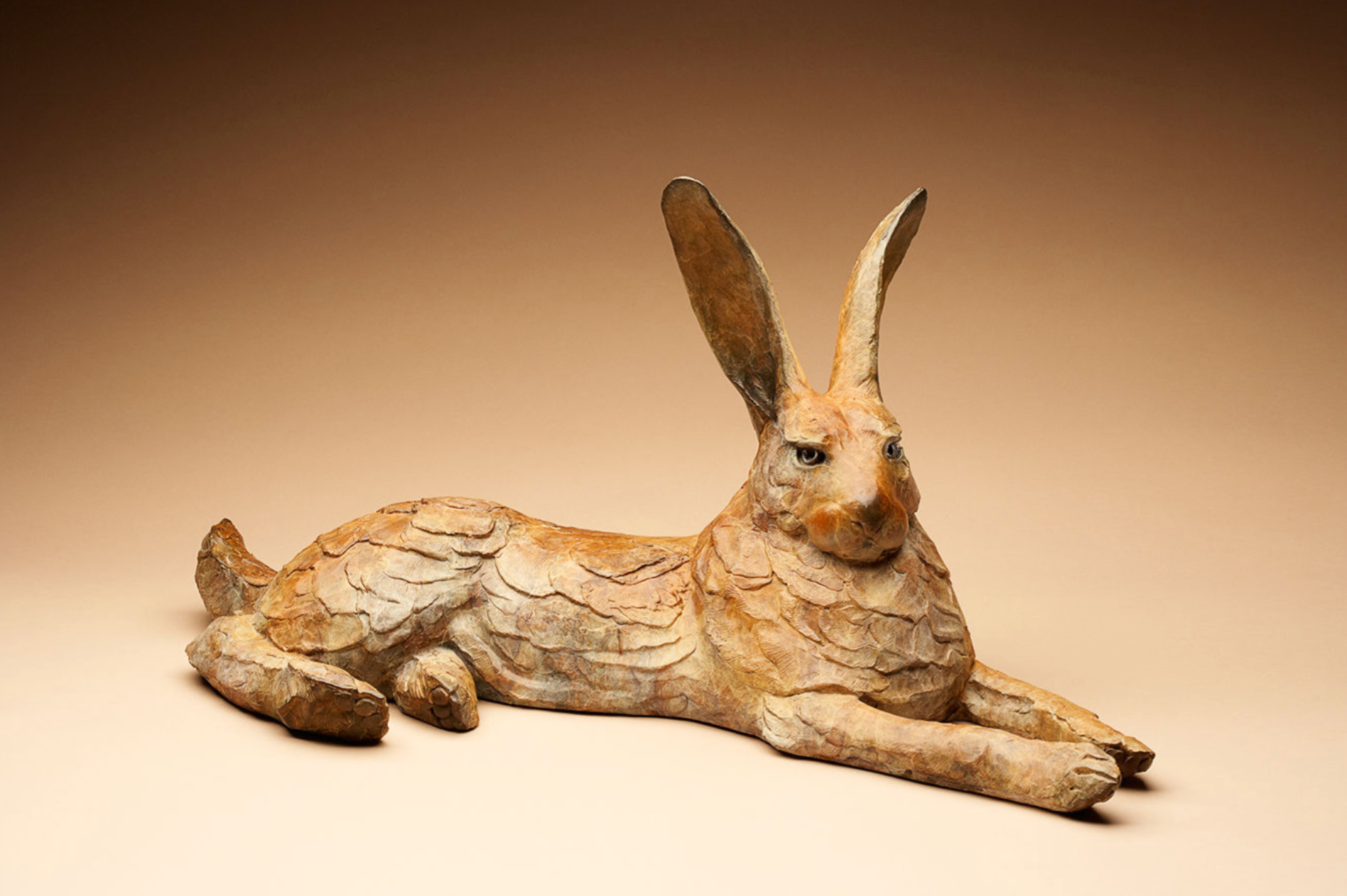 Star Liana York’s lifesize jack rabbits have been a collector favorite. Jack of Hearts captures an adult male rabbit in a moment of relaxed repose. Edition of 35. 14.5 x 28 x 11.5