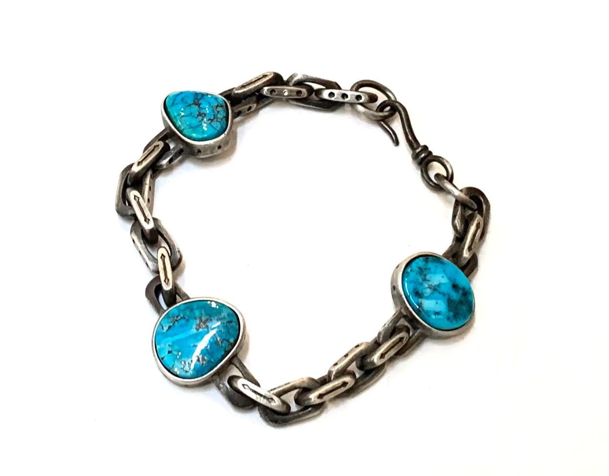 Oxidized Silver with 3 Morenci Turquoise Stones.