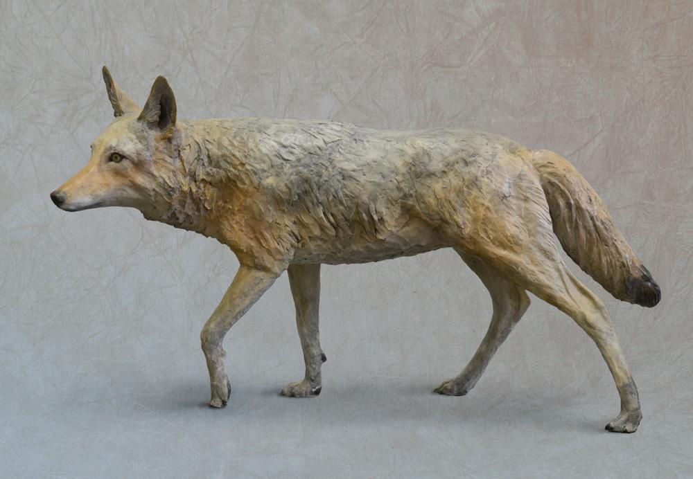 Jim Eppler’s lifesize bronze coyote captures this elusive animal mid-stride. Suitable for indoor and outdoor environments.