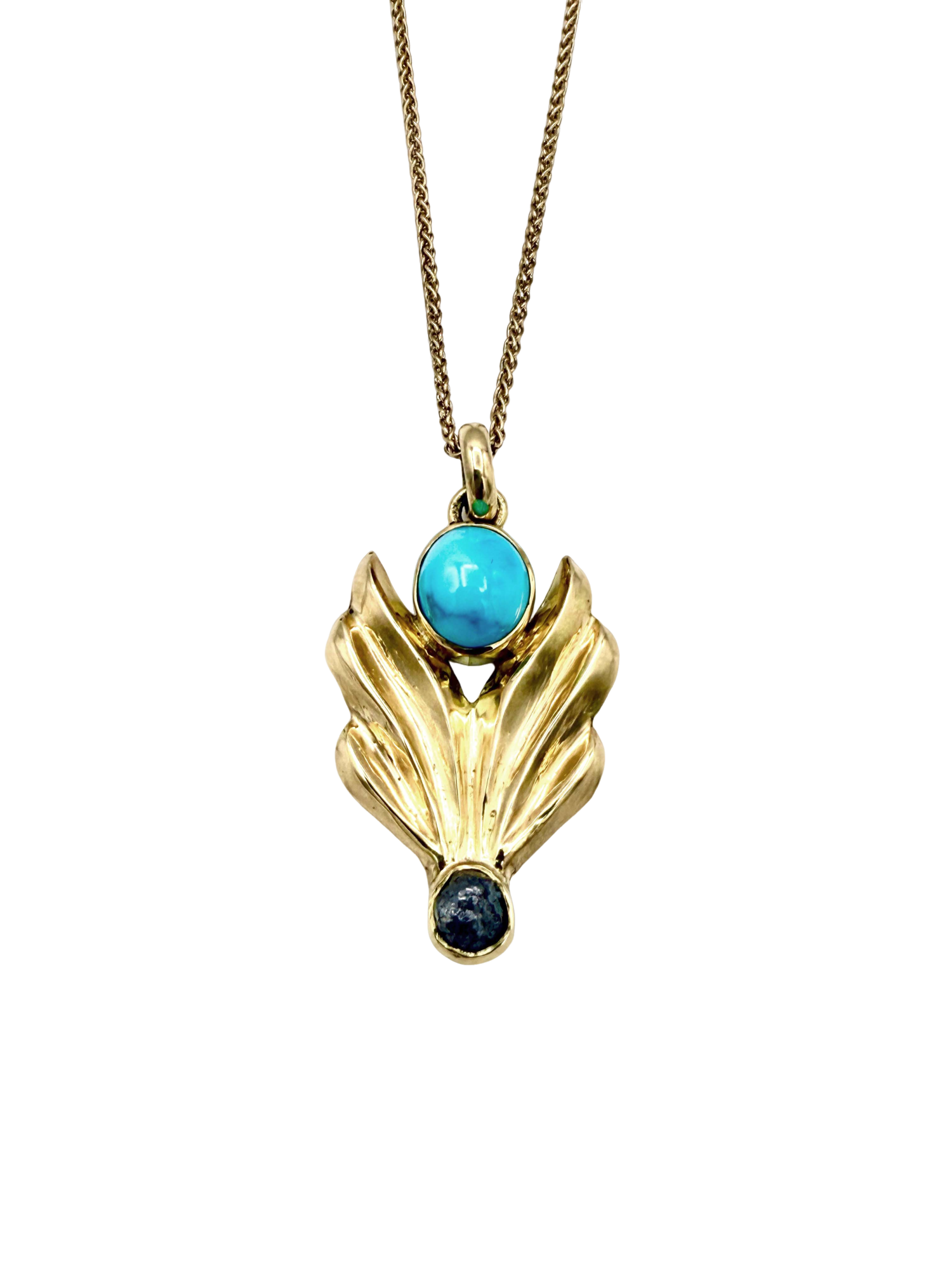 18K Gold, McNulty Turquoise and Diamond. Chain included