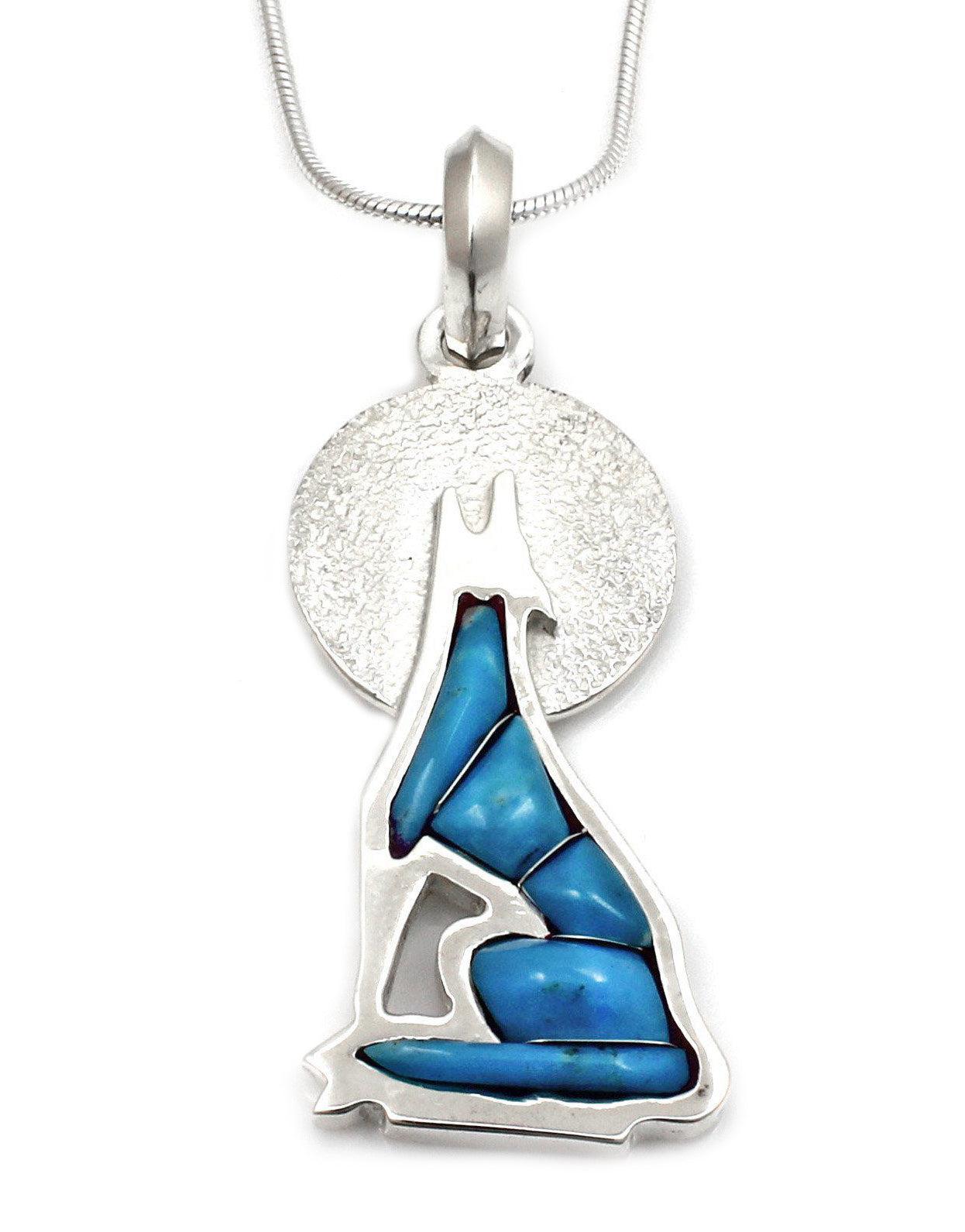 Sterling silver with turquoise, 2 3/8" x 7/8" (including bail), 18" chain