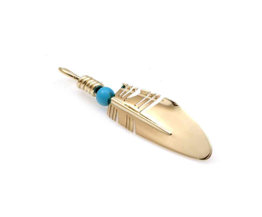 14K gold with coral or turquoise bead. 1 3/4" x 3/8"