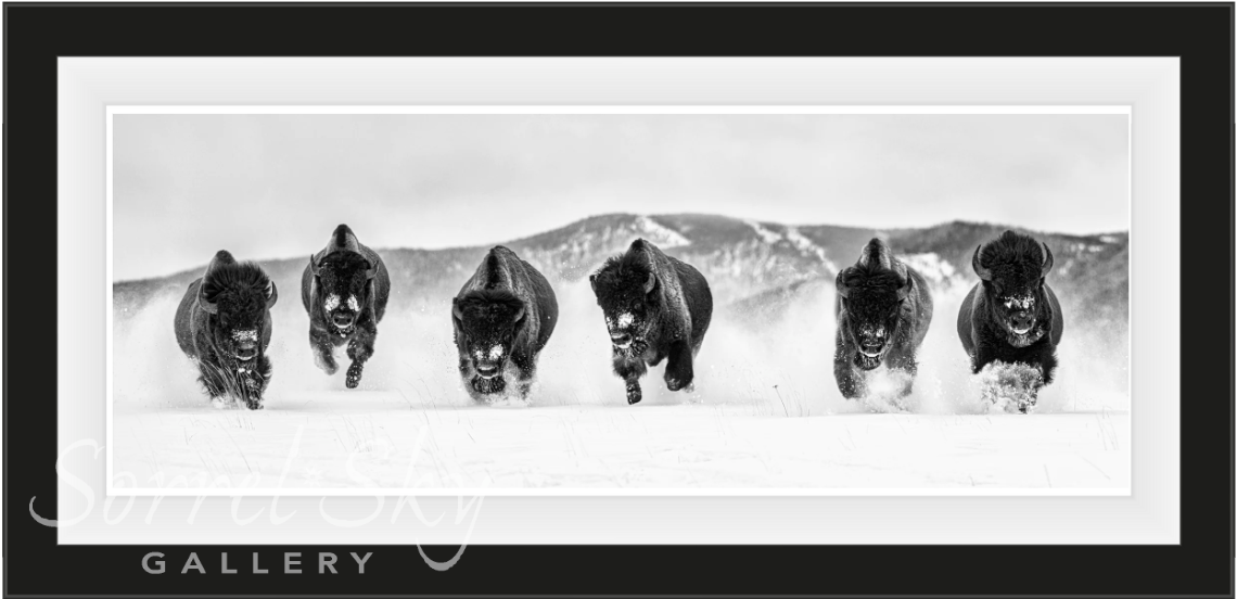 The concept of this photograph has been on my wish list for many years. A group of male bison charging through heavy snow, directly towards a camera is certainly a rare sight and it always seemed a bridge too far from almost every perspective. The question has always been where and how could this epic scene unfold in front of a camera?